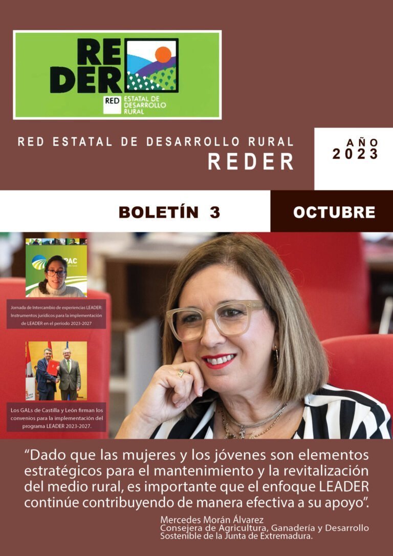 Os adjuntamos enlace al tercer boletín de REDER 2023 confiando en que sea de vuestro interés: Contenidos: Editorial Entrevista A Mercedes Morán Álvarez. Consejera de Agricultura, Ganadería y Desarrollo Sostenible de la Junta de Extremadura. La Comisión ha adoptado este mes de octubre (2023) una Comunicación en la que presenta un conjunto de instrumentos que…